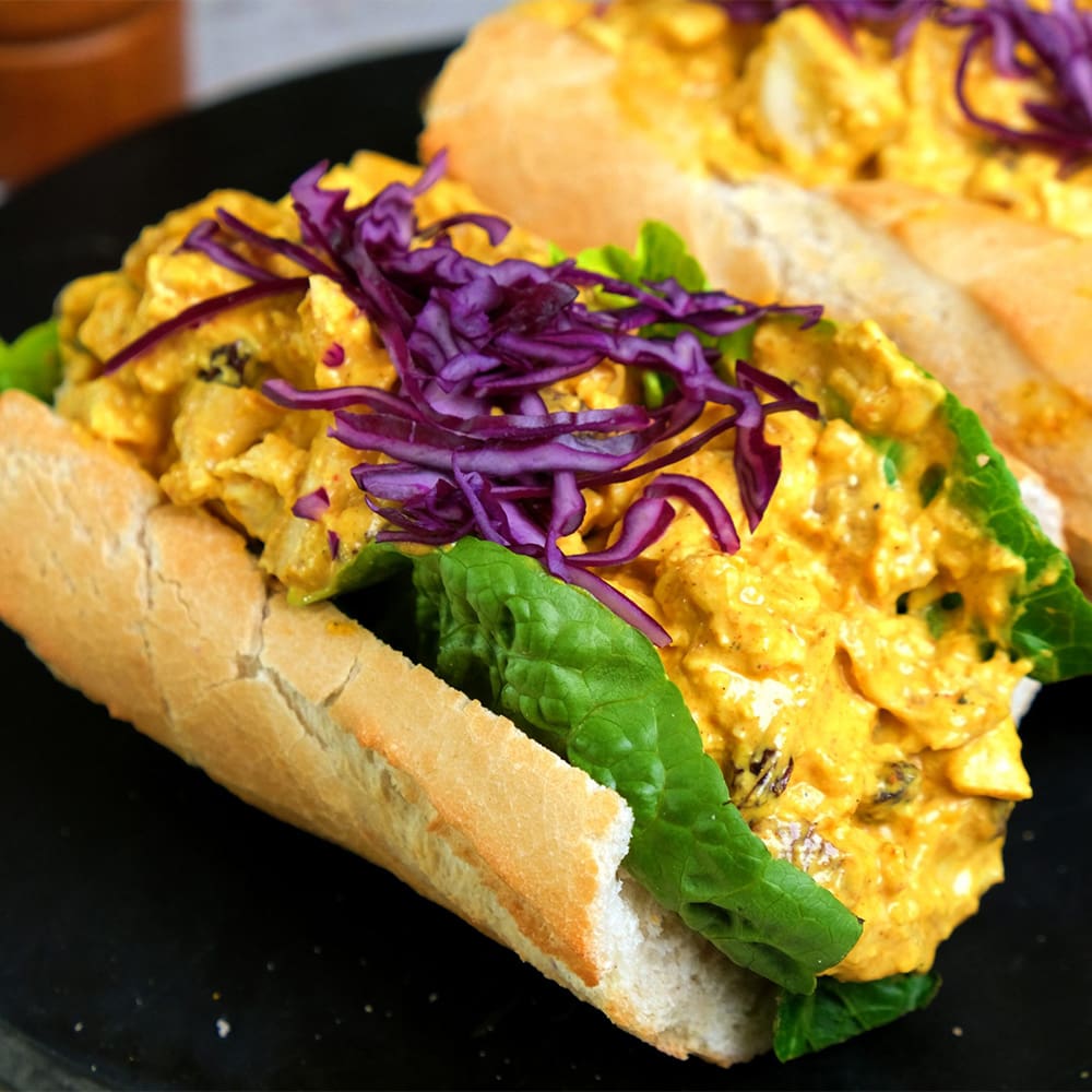 Chicken Breast Pieces (55%) (Chicken Breast (98%), Water, Salt), Thick & Creamy Mayonnaise (41%) (Water, Rapeseed Oil, Sugar, Preservative: Acetic Acid E330, Salt, EGG Yolk Powder (Pasteurised EGG Yolk Powder, Salt, Maltodextrin), Modified Maize Starch, Stabilisers: Xanthan Gum E415, Guar Gum E412, Preservative: Potassium Sorbate), Tikka Glaze (4%) (Sugar, WHEY POWDER (MILK), Spice; Turmeric, Ginger, Chilli Powder, Paprika, Coriander, Cumin, Salt, WHEAT Flour (GLUTEN), Calcium Carbonate, Iron, Nicotinamide and Vitamin B, Thickener; Guar Gum E412, Cornflour, Maltodextrin, Herb; Parsley, Coriander, Garlic Powder, Acidulant; Citric Acid E330, Paprika Extract E160c)