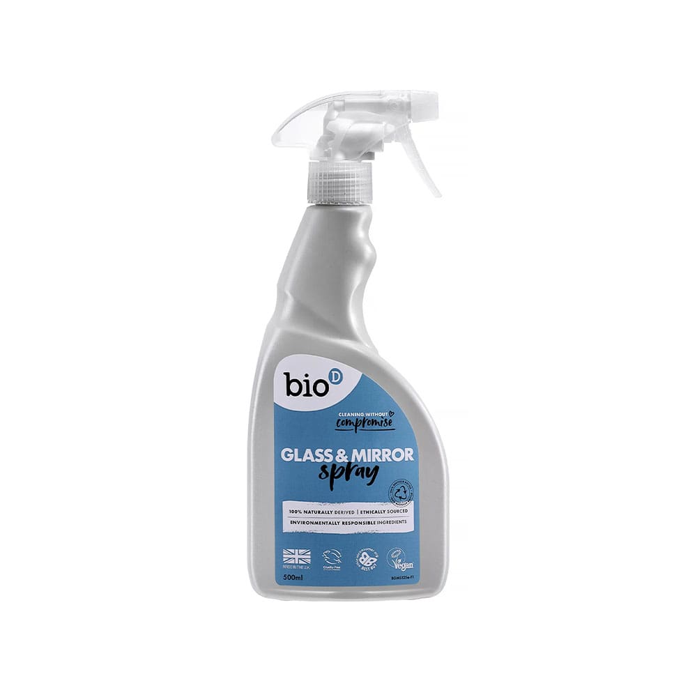 Bio D Glass and Mirror Spray removes limescale and watermarks for a streak-free shine on glass, mirrors, and windows. Ready to use in a 500ml bottle.