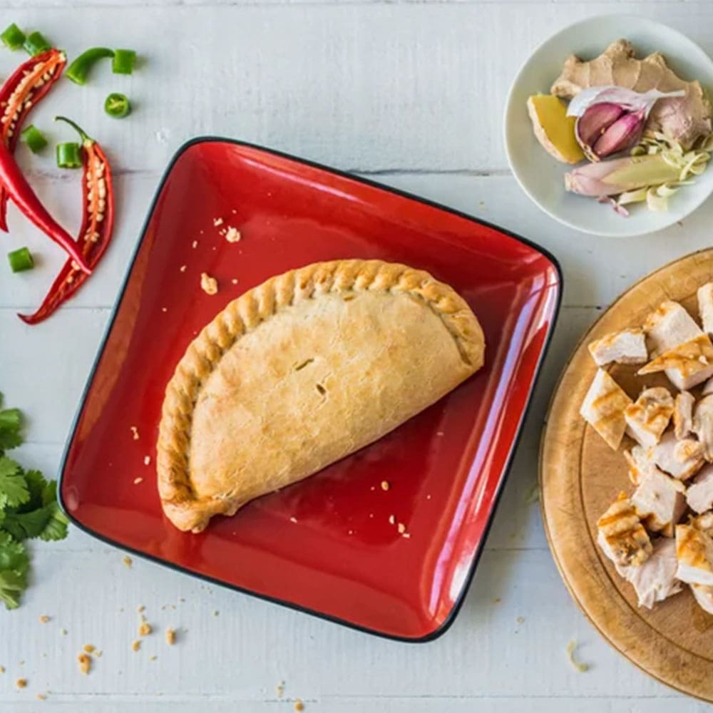 Wheat Flour (Wheat Flour, Calcium Carbonate, Iron, Niacin, Thiamin), Potato (17%), Margarine (Vegetable Oils and Fats (Palm, Rapeseed), Water, Salt, Emulsifier: E471, Acid:Citric Acid), Coconut Milk (Coconut, Water), Water, Chick Peas, (6%), Green Beans (4%), Red Peppers (4%), Broccoli (3%), Mixed Green and Red Peppers (2%), Sweetcorn (2%), Onions (2%), Modified Maize Starch, Red Curry Paste (1%) (Garlic, Dried Red Chilli, Lemongrass, Shallot, Salt, Galangal, Kaffir Lime Peel, Pepper), Palm Sugar (Coconut Palm Sugar, Water, Preservative: Potassium Sorbate, Colour: Tartrazine), Salt, Sugar, Soy Sauce With Mushroom (Water, Defatted Soybeans, Wheat, Salt, Sugar, Flavour Enhancer: Monosodium Glutamate, Mushroom, Preservative: E211).