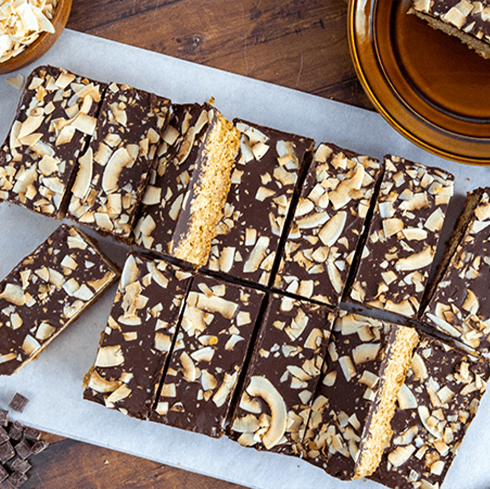 Cakesmiths Coconut Chocolate Flapjack features gluten-free oats and dark chocolate, topped with toasted coconut. A perfect indulgent snack for your menu.