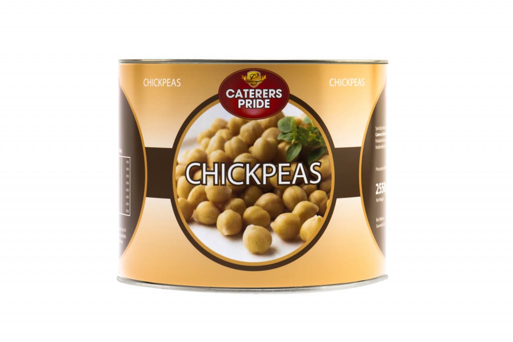 High-quality canned chick peas in 2.65kg packs, perfect for soups, salads and hummus. Convenient and nutritious ingredient for professional kitchens.