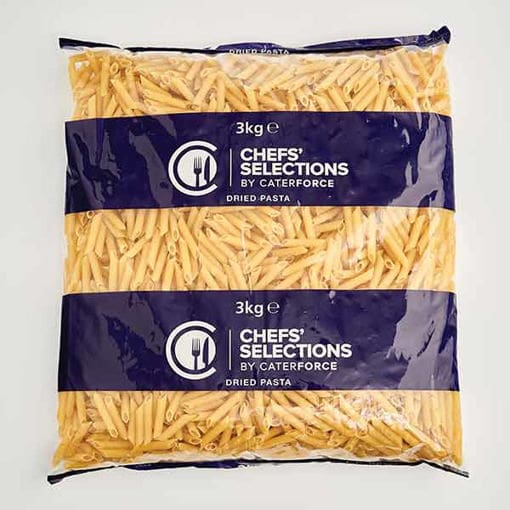 Chefs’ Selections Penne Pasta, made from premium durum wheat semolina. Perfect for classic Italian dishes, available in convenient 3kg packs.