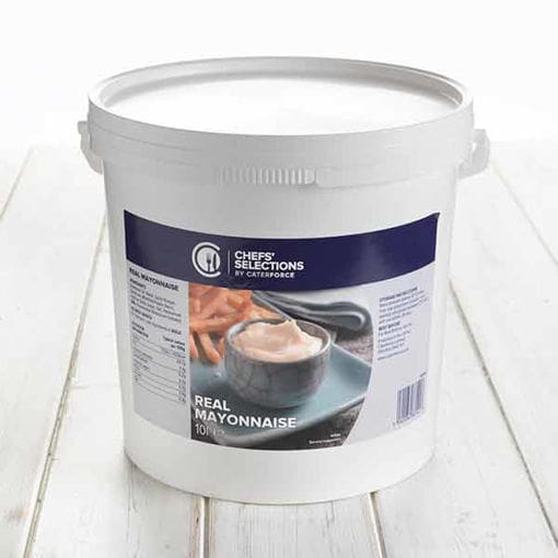 Chefs’ Selections Real Mayonnaise in a 10L bulk container, featuring a thick creamy texture and balanced flavour. Perfect for sandwiches, dressings, and sauces.