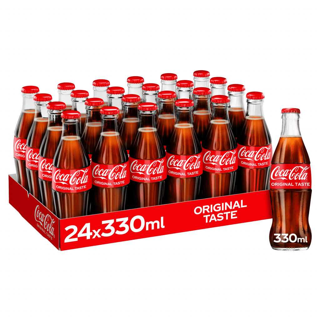 Coca-Cola Glass Bottle 24x330ml offers refreshing, classic carbonates. Ideal to serve chilled or as a mixer, perfect for your hospitality or retail shelves.
