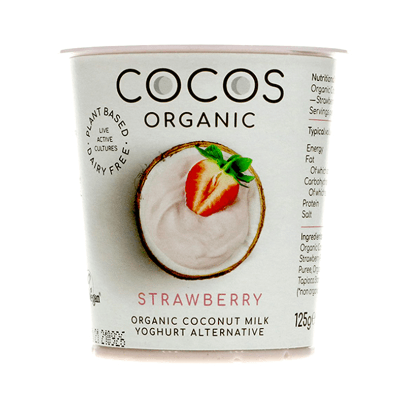 Organic Coconut Milk (80%) (Organic Coconut /Filtered Water*), Organic Strawberry Puree (17%) (Organic Strawberry Puree, Organic Fruit Concentrate), Thickener: Organic Tapioca Starch, Live Vegan Cultures*, (*Non Organic Ingredients)