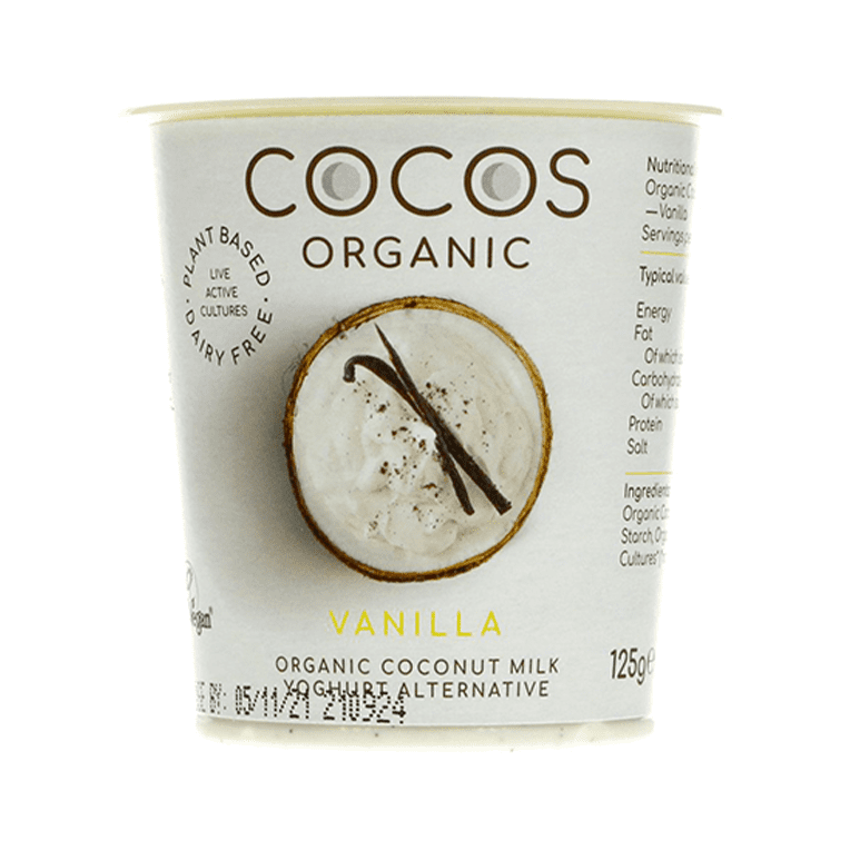 Organic Coconut Milk (96%) (Organic Coconut/ Filtered Water*), Organic Vanilla (2%), Thickener: Organic Tapioca Starch, Live Vegan Cultures*, (*Non Organic Ingredients)