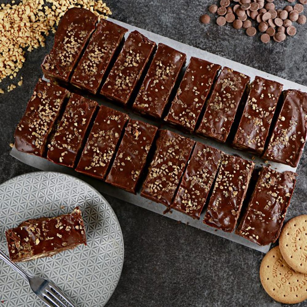 Coopers Honeycomb Tiffin, pre-sliced into 16 portions, perfect for easy serving and sharing in cafés or hospitality menus. Supplied in convenient 2×16 portion trays.