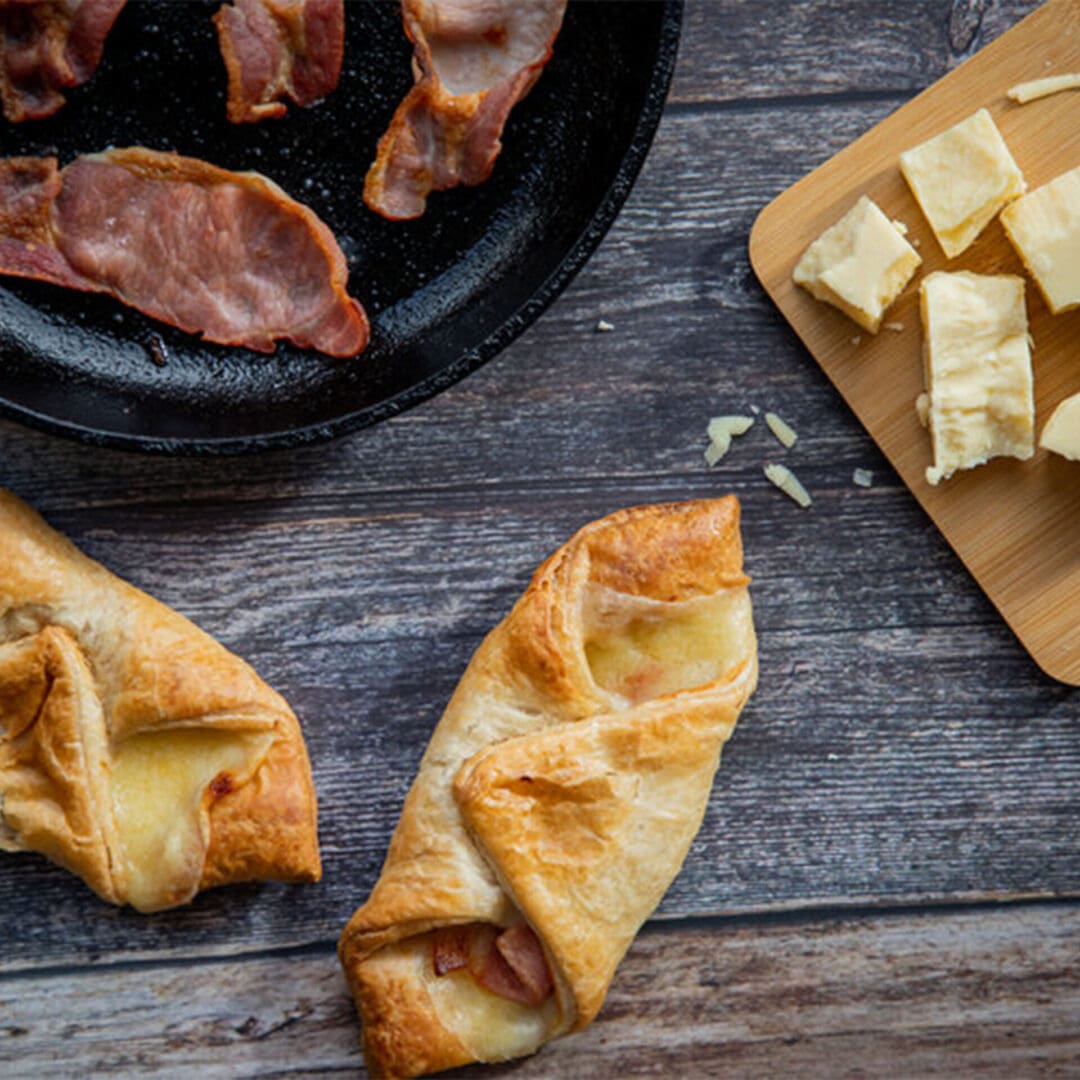 Experience the Cornish Premier Bacon & Cheese Turnover, featuring rindless back bacon and mature cheese wrapped in delicate puff pastry. Perfect for warming and serving fresh in your kitchen, delivered in a convenient 40x140g pack.