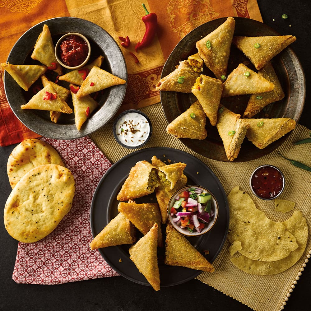 Vegetables (44%) (Potato, Onion, Peas, Carrot), WHEAT Flour, Water, Rapeseed Oil, Cornflour, Spice Seasoning Blend (Salt, Coriander, Cumin, Black Onion Seed, Cayenne Pepper, Fennel, Ginger, Dill, Rapeseed Oil, Clove), Tomato Purée, Sugar, Stabiliser (Methyl Cellulose), Chilli Powder, Salt, Concentrated Lemon Juice, Turmeric, Rice Starch, Coriander Leaf, Emulsifier (SOYA Lecithins).