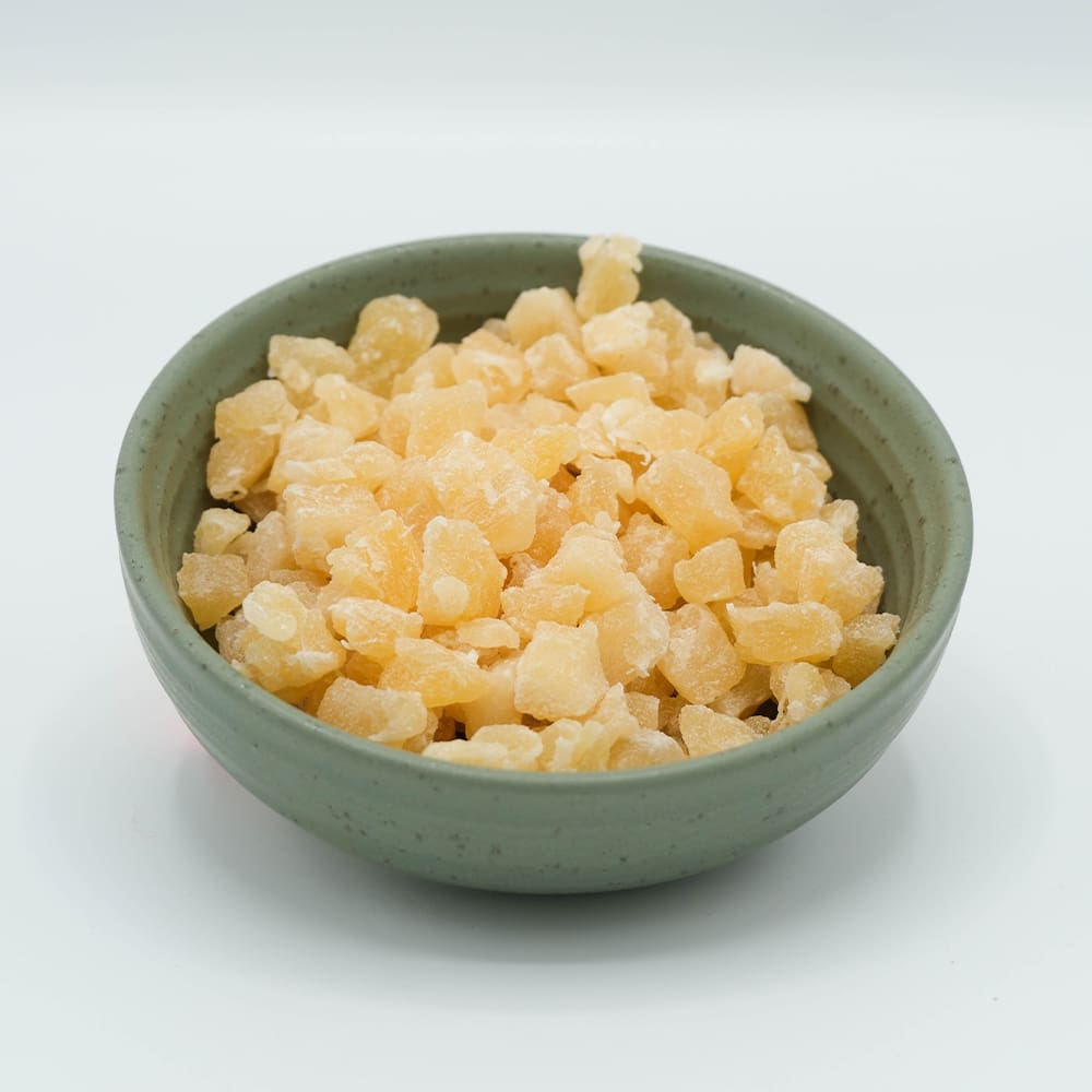 Premium diced pineapple in 5kg packaging, perfect for enhancing baked goods, desserts and salads with natural sweetness and excellent quality.