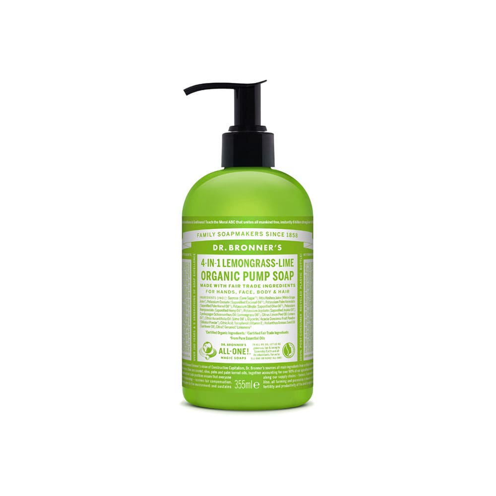 Gentle and refreshing, Dr Bronners Organic Lemongrass Lime Pump Soap in 355ml delivers natural cleansing with an uplifting citrus fragrance for premium bodycare.