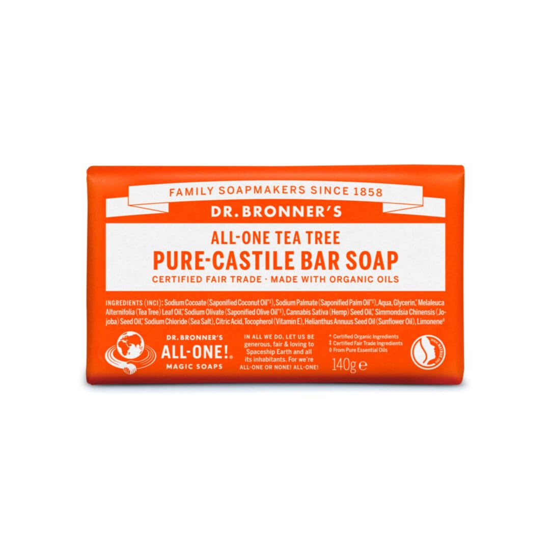 Dr Bronners Tea Tree Soap features pure tea tree oil to cleanse and soothe acne-prone skin. Concentrated, biodegradable formula in a 3.79 litre size.