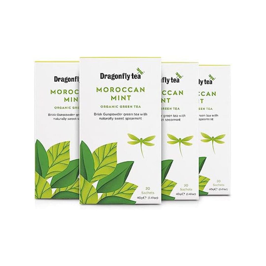 Dragonfly Organic Moroccan Mint Green Teabags deliver a fresh and authentic combination of green tea and mint in a convenient 4×20 pack. Perfect for both hot and iced tea offerings.
