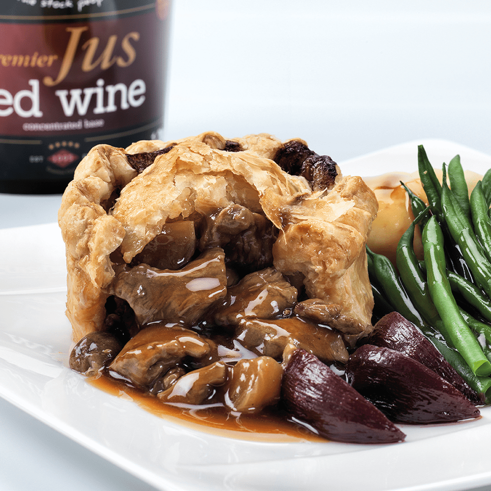 Essential Cuisine Premier Red Wine Jus adds rich, full-bodied flavour to meats and sauces. Perfect for enhancing dishes in professional kitchens. Available in 1.2kg format.