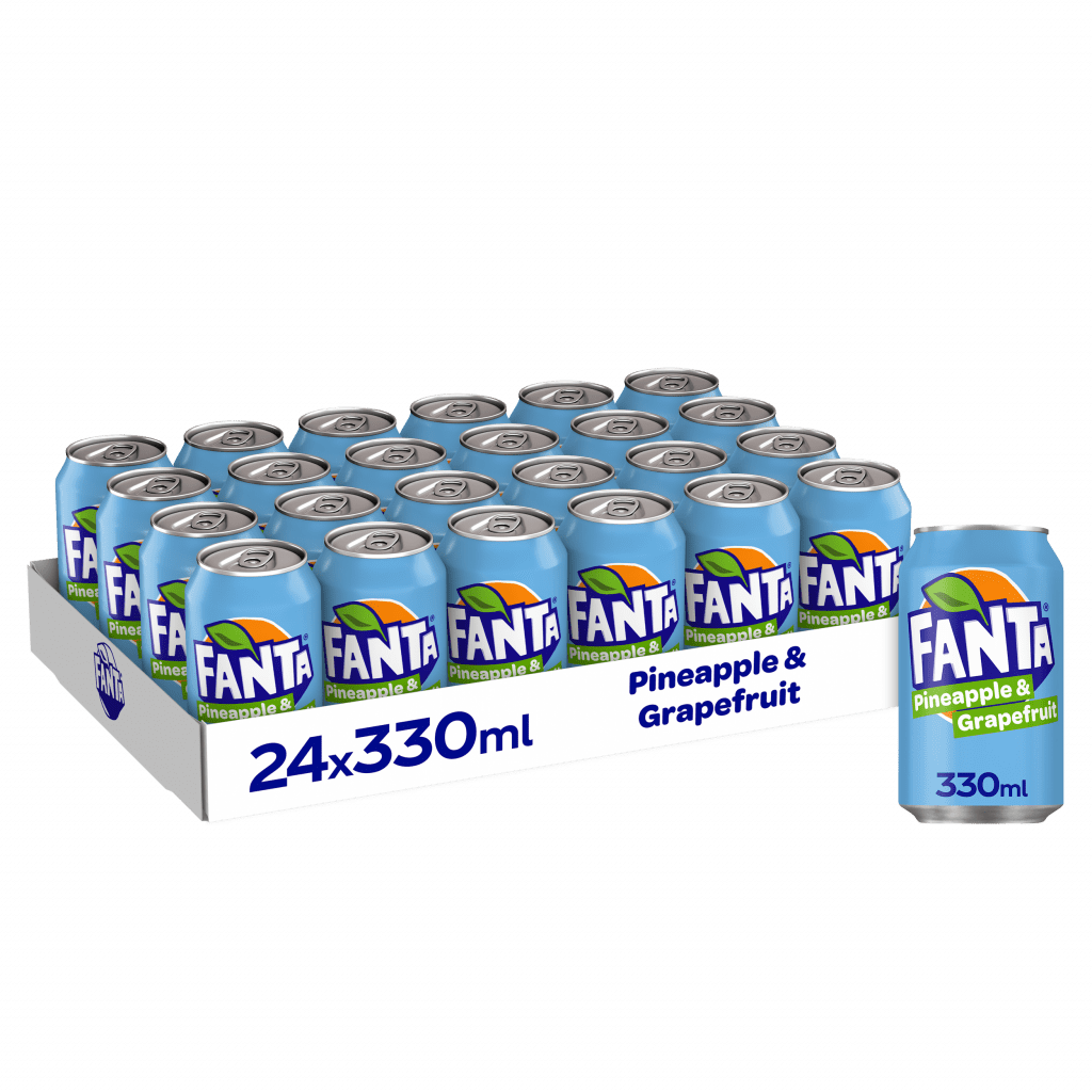 Fanta Pineapple & Grapefruit Can 24x330ml delivers a tropical, refreshing taste perfect for chilled serving or as a cocktail mixer, ideal for professional menus.