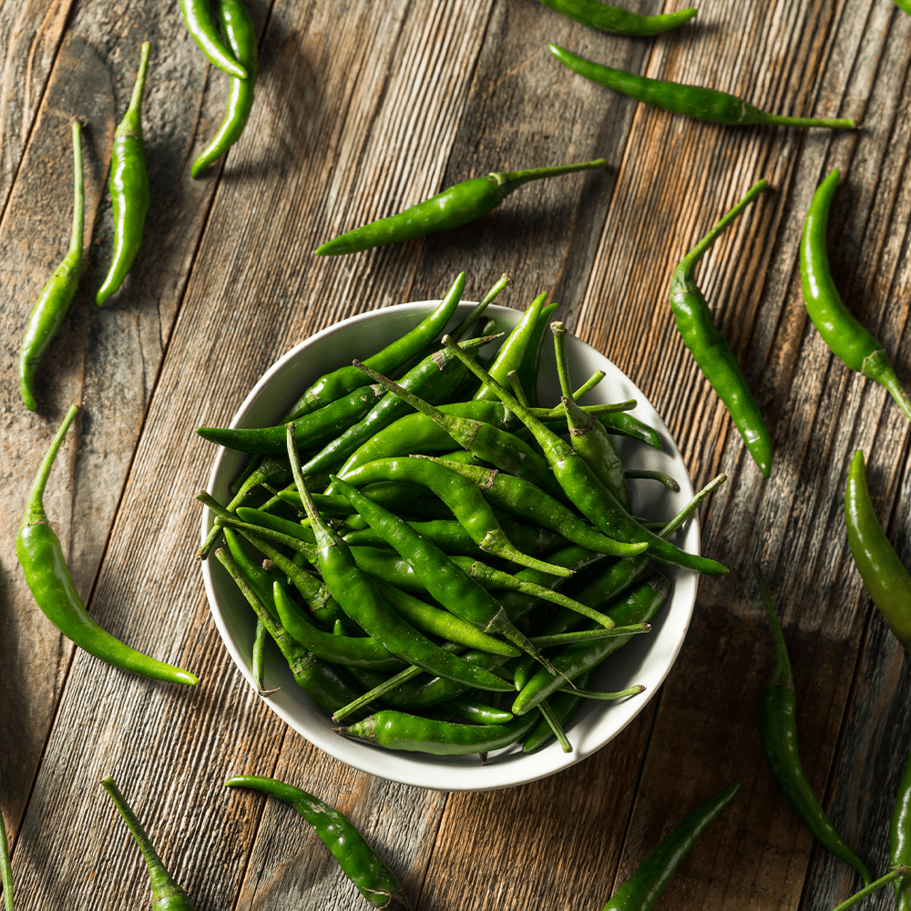 Fresh green chillies in 1kg packs offering a vibrant, spicy flavour perfect for cooking, sauces, and garnishing. Trust Hunt's Food Group for quality.