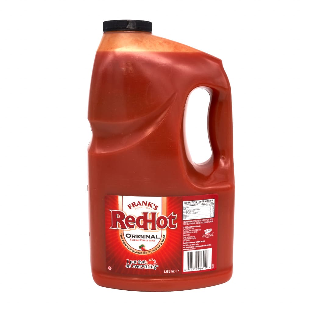 Frank's Original Cayenne Pepper Sauce blends aged cayenne peppers for a bold heat and rich flavour. Supplied in 3.78Lt tubs, perfect for wings, marinades and sauces.