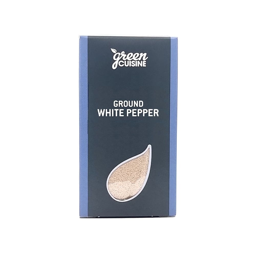 Green Cuisine Ground White Pepper, packed 6x25g, delivers fine flavour and mild heat perfect for enhancing sauces, soups and seafood dishes.