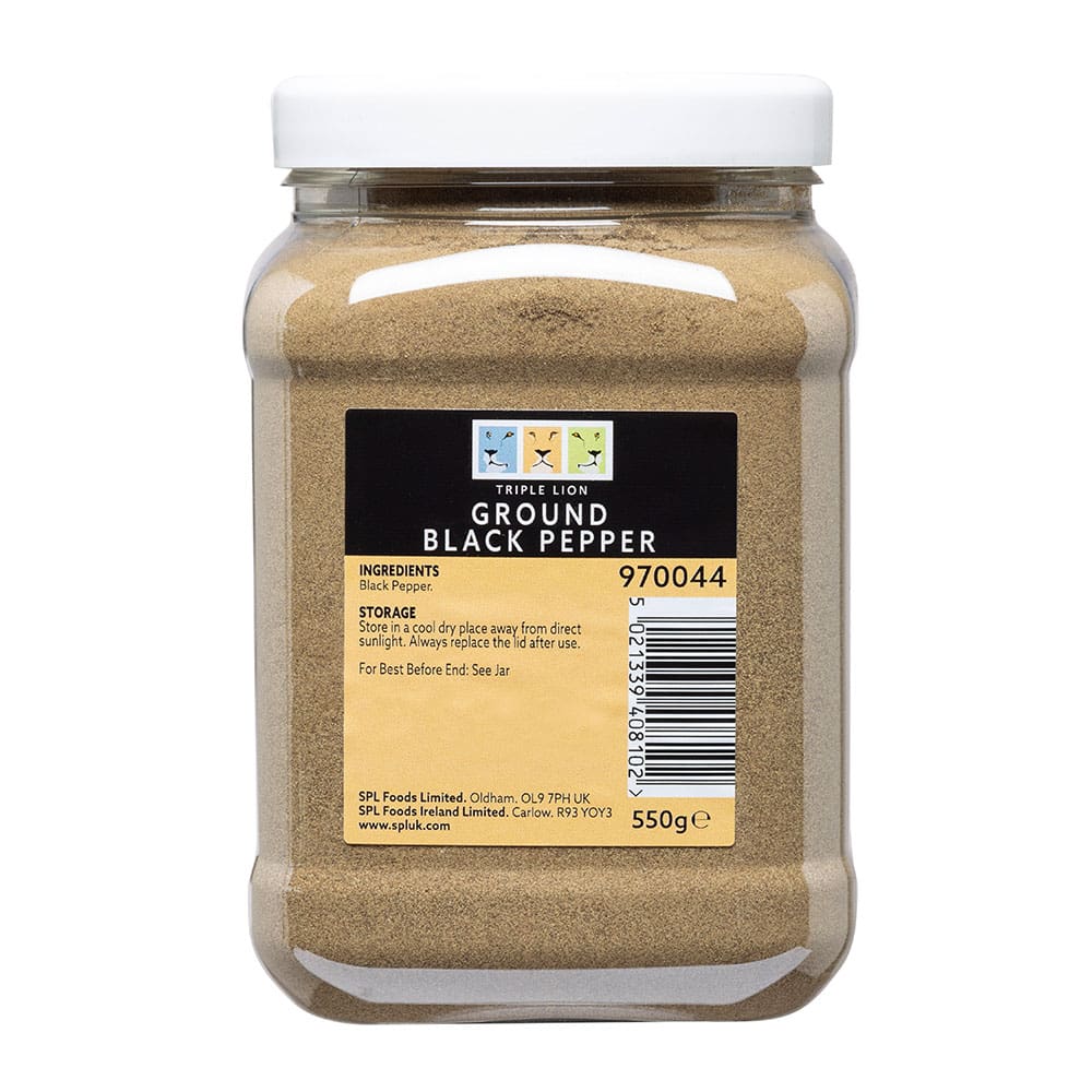 Ground Black Pepper 550g by Triplelion delivers a finely ground, robust flavour perfect for enhancing a wide range of dishes. Trusted by culinary professionals.
