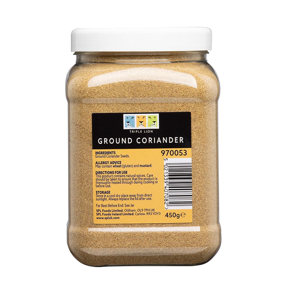 Top-quality ground coriander 450g by Triplelion, perfect for soups, curries, and stir fries. Essential for creating vibrant herb and spice blends with reliable flavour.