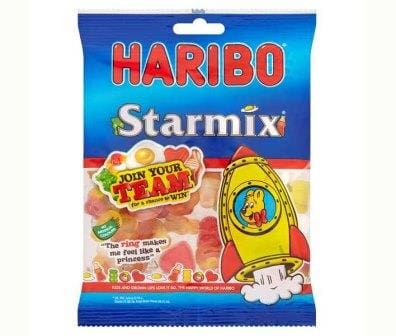 Haribo Starmix features real fruit juice in iconic fruit and cola gummy sweets like Bears and Cola Bottles, packed in 12x160g bags. A natural, colourful treat.