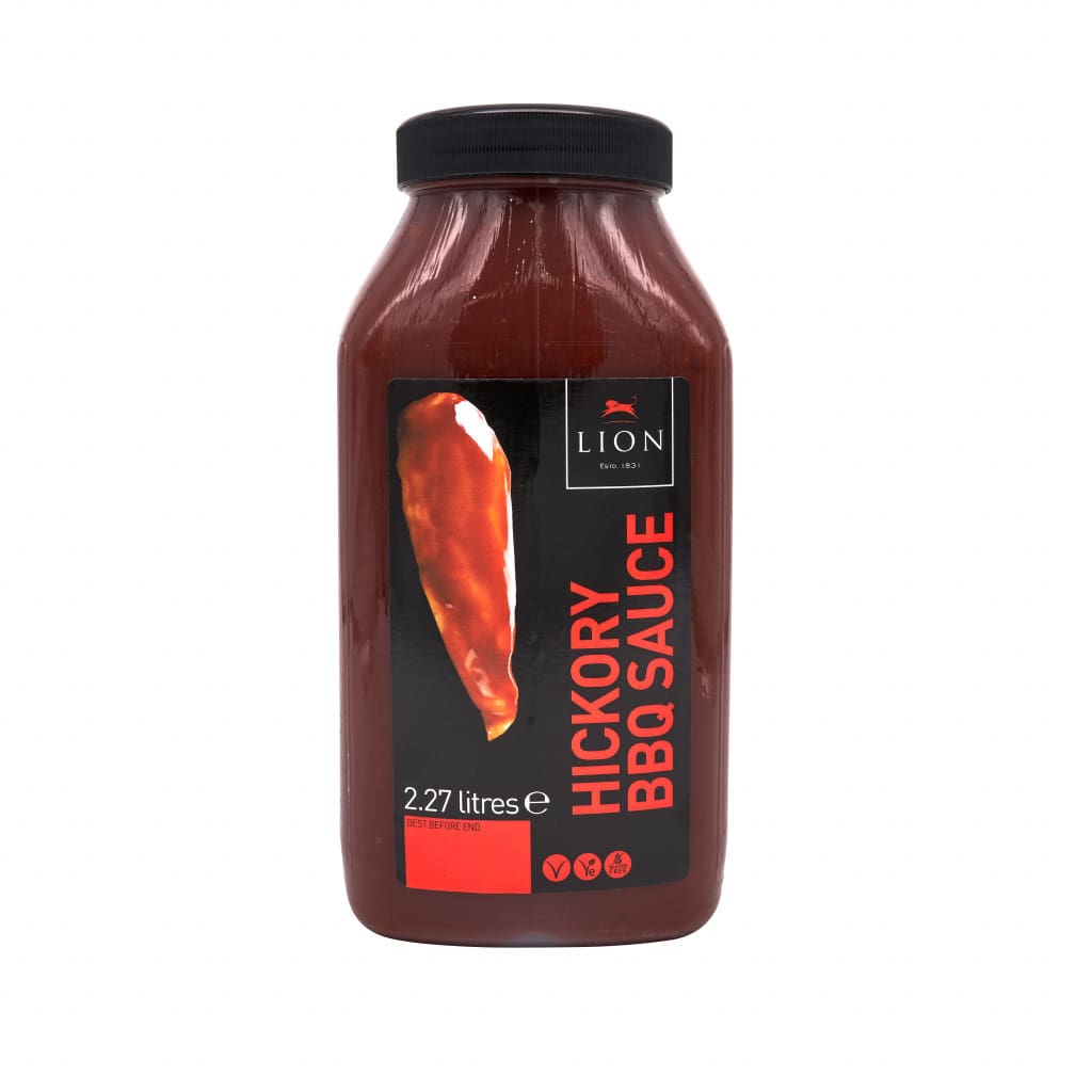 Lion BBQ Hickory Sauce 2.27L offers a rich smoky blend of sweet, savoury, smoky and spicy notes. Ideal for glazing ribs and marinating large batches in professional kitchens.