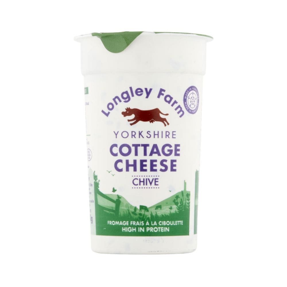 Creamy Longley Farm Chive Cottage Cheese 250g with fresh chive flavour. Perfect for sandwiches, salads or snacking in professional kitchens.