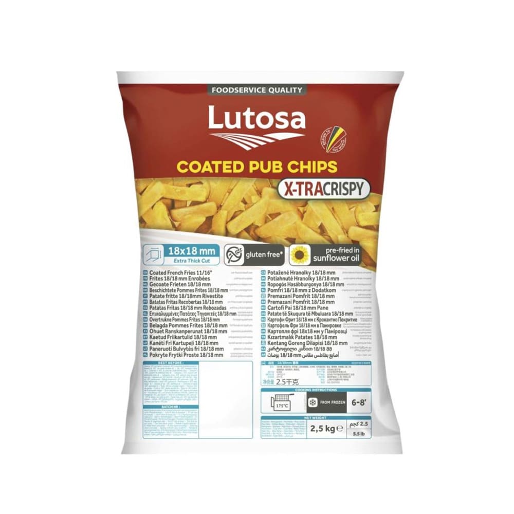 Lutosa Coated Ultra Crunchy Skin On 18mm Chips deliver exceptional crispiness with their unique coating and skin-on texture. Available in 4x2.5kg packs, ideal for busy kitchens seeking consistent quality and authentic flavour.