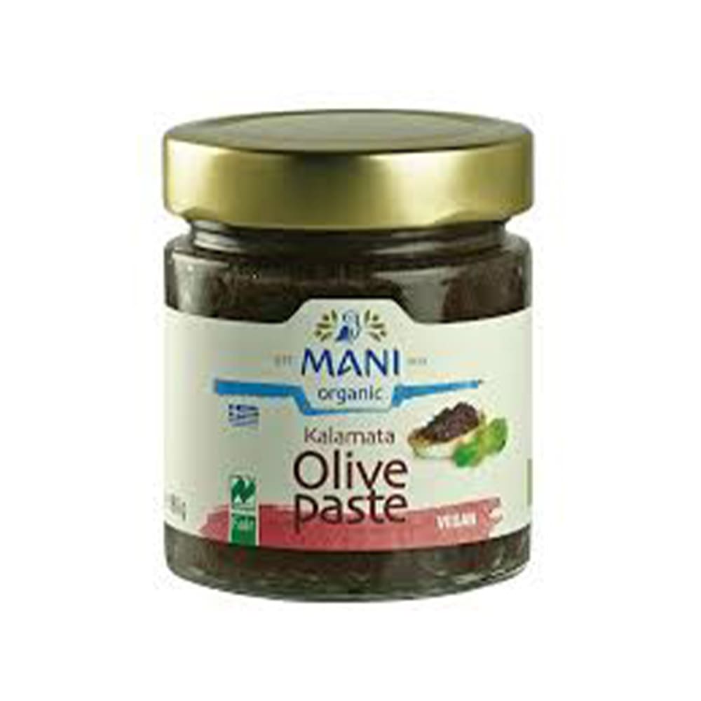 Mani Organic Kalamata Olive Paste is a mild, fruity spread crafted from organic Kalamata olives, ideal for elevating Mediterranean cuisine with authentic flavour. Available in 180g jars.