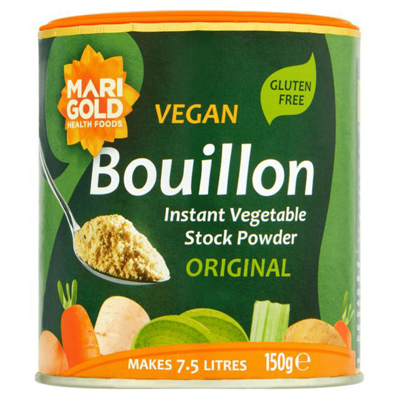 Marigold Vegan Bouillon is a reduced salt vegetable stock powder, palm oil free and perfect for enhancing vegan dishes with natural flavours. Supplied in 150g packs.