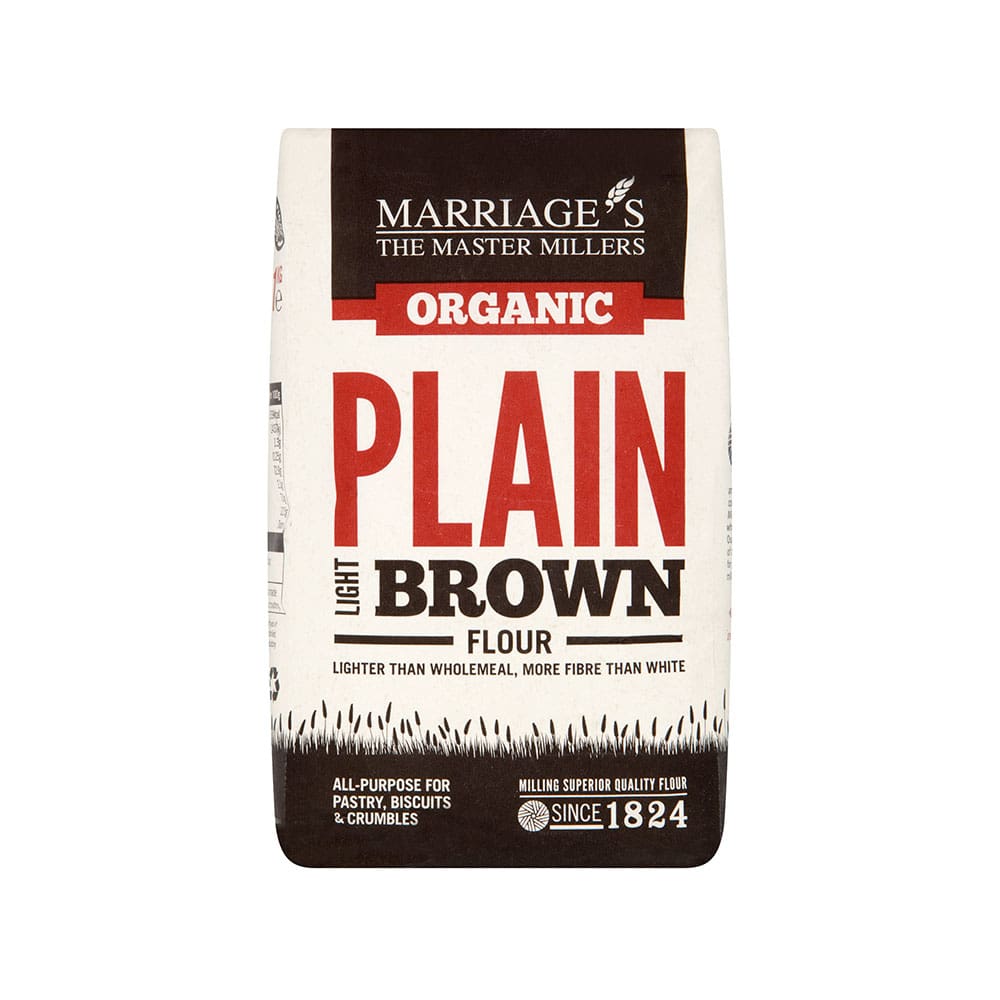 Marriages Organic Light Brown Plain Flour combines more fibre than white flour with a light texture, ideal for pastries, biscuits and crumbles.