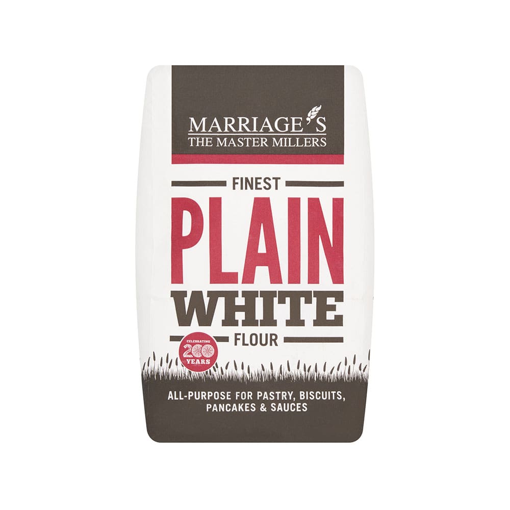 Marriages Plain White Flour 5×1.5kg delivers consistent baking quality ideal for breads, cakes and sauces, perfect for professional kitchens seeking reliability.