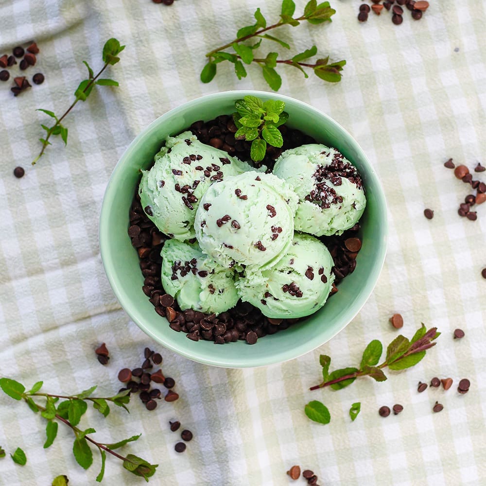 Fresh MILK (55%), Double Cream (MILK) (18%), Sugar, Chocolate Chips (4%) (Sugar, Cocoa Mass, Cocoa Butter, Emulsifier [ SOYA Lecithin], Natural Vanilla Flavouring), Buttermilk Powder (MILK), Glucose Syrup, Dextrose, Emulsifier (Mono- and Diglycerides of Fatty Acids), Stabilisers (Locust Bean Gum, Guar Gum, Carrageenan), Natural Peppermint Flavouring (<1%), Natural Colour (Copper Chlorophyllin).
