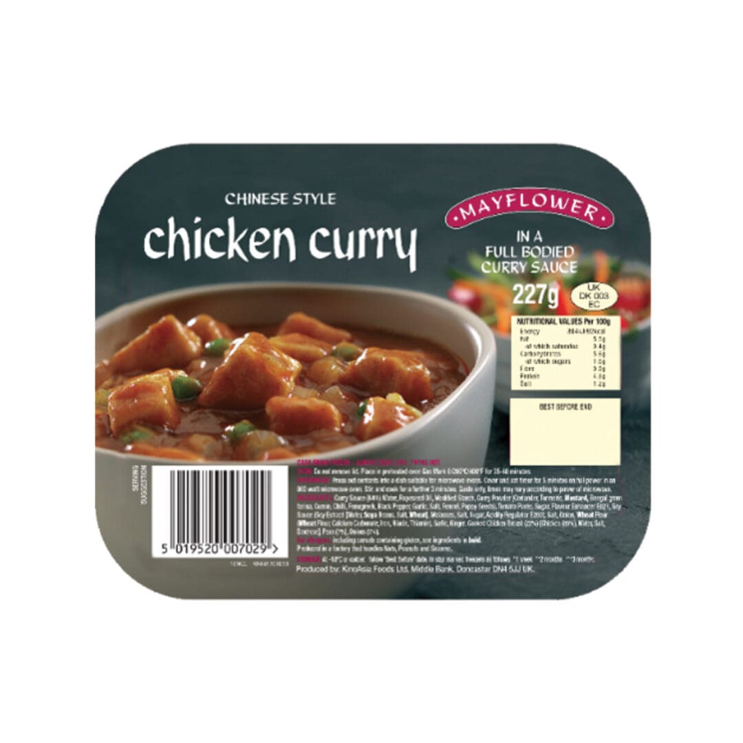 Mayflower Chicken Curry ready meals come in 6x227g packs, featuring tender chicken simmered in a rich, flavourful curry sauce. Perfect for quick, tasty dishes served with rice or naan, ensuring consistent quality and ease of use.