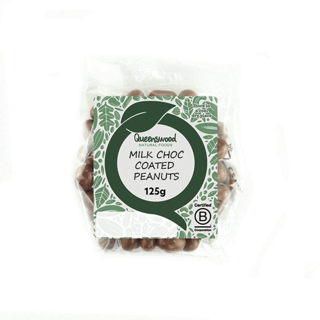 Indulge in Queenswood Milk Chocolate Coated Peanuts, presented in convenient 5x125g packs. Creamy chocolate combined with crunchy peanuts, ideal for premium snack selections.