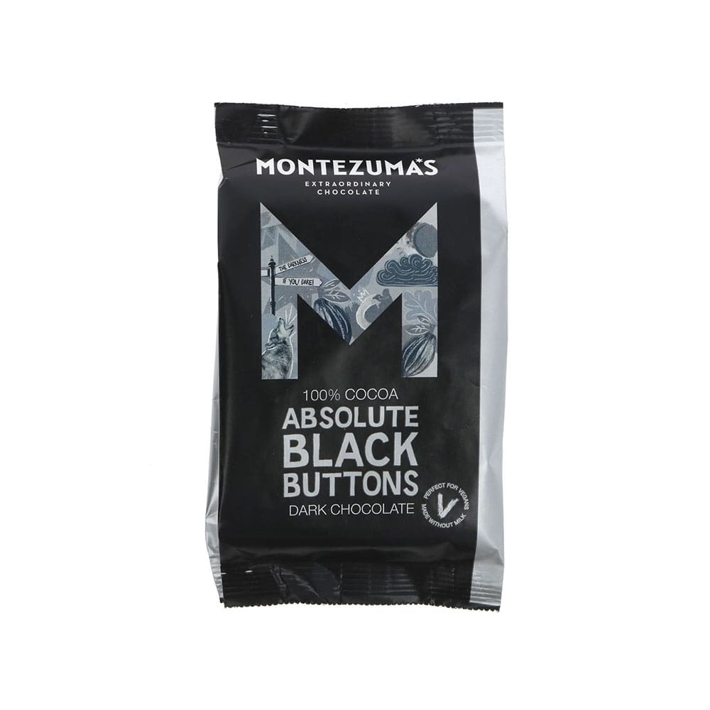 Montezumas Absolute Black Buttons feature rich dark chocolate ideal for baking and desserts, supplied in convenient 8x120g packs for professional kitchens.