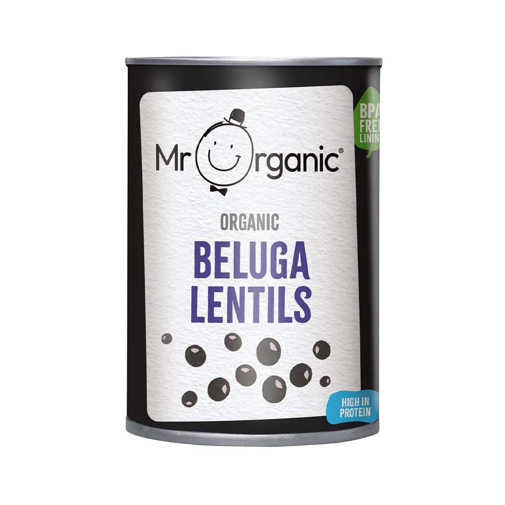 Mr Organic Beluga Lentils come in BPA-free 400g tins with no added salt or sugar. Ideal for soups, salads and healthy dishes, offering consistent quality for professional kitchens.
