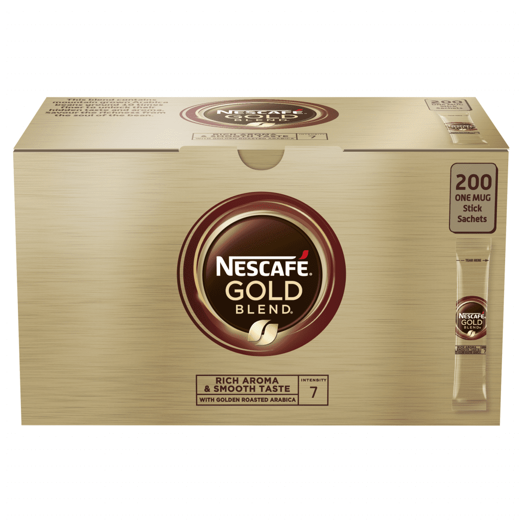 Nescafe Gold Blend Sticks offer rich, smooth instant coffee in a handy 1x200 pack. Ideal for quick, quality coffee-serving solutions.