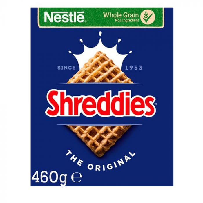 Nestle Shreddies 10x460g is a wholegrain wheat cereal delivering a classic crunch with added B vitamins and iron. Perfect for diverse breakfast menus.