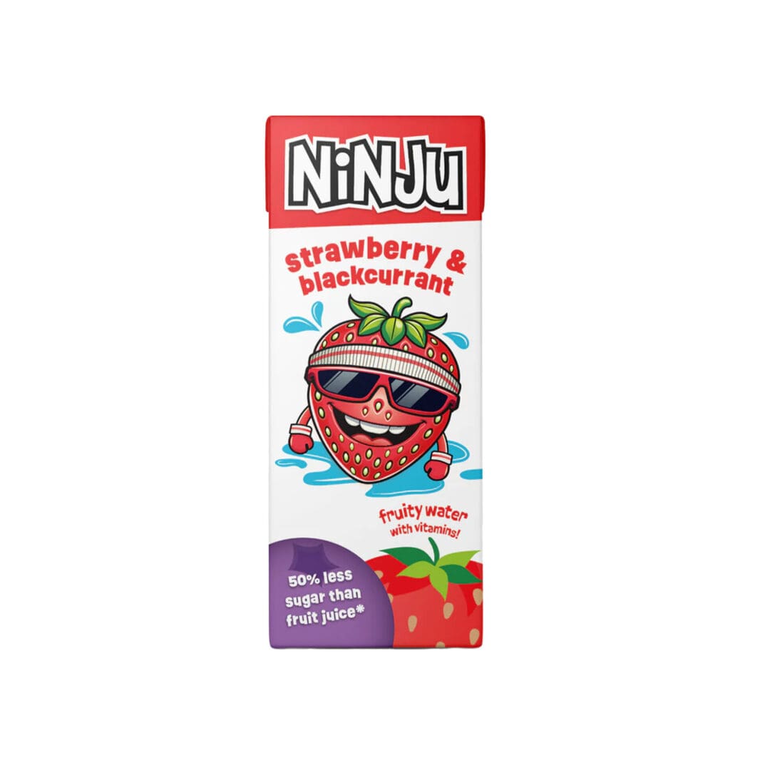Ninju Strawberry & Blackcurrant Juice Drink offers a vibrant blend of berry flavours with added vitamins. Presented in convenient 24x200ml packs, it delivers natural, flavourful hydration with 50% less sugar than typical fruit juices.