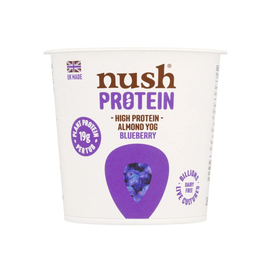 ALMOND Drink (73%) (Filtered Water, Almonds), Blueberry Puree (20%) (Blueberry Puree, Fruit Extract, Water, Lemon Concentrate), Fava Protein (3%), Thickener: Tapioca Starch, Citrus Fibre, Live Vegan Cultures.
