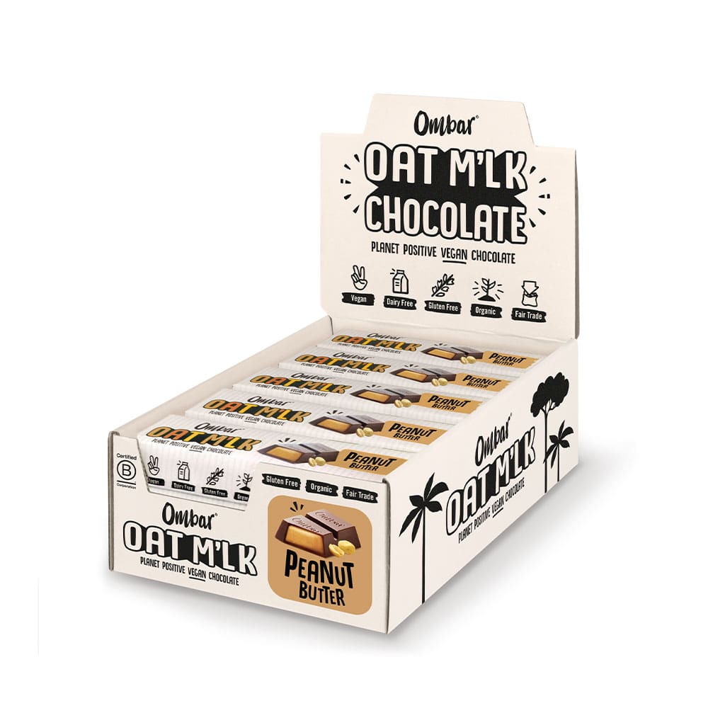 Ombar Oat M’lk Peanut Butter Filled Bars 15x42g combine smooth plant-based chocolate with a rich peanut butter centre. An exceptional choice for gourmet snacking.