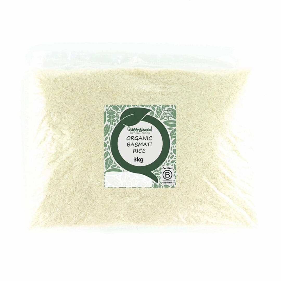 Premium Organic White Basmati Rice in 3kg packs, ideal for aromatic and flavourful dishes. Consistently clean and fluffy, suited for catering demands.