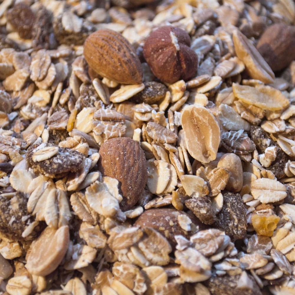 OATS, Toasted WHEAT Flakes, Sultanas, BARLEY Flakes, WHEAT Flakes, Sunflower Seeds, Apricots Chopped, Dates, Chopped, HAZELNUTS, Coconut, ALMONDS, Cardamom