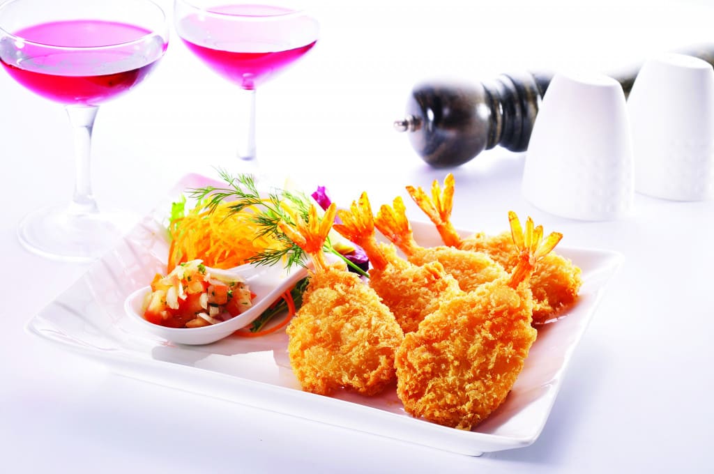 Prawns ((CRUSTACEANS), Stabilisers (E450, E451)) (50%), Breadcrumb (27%) (WHEAT Flour, Palm Oil, Sugar, Salt), Batter (23%) (WHEAT Flour, Water, Squid Extract Powder (MOLLUSCS), Salt, Raising Agents (E450, E500), Flavour Enhancer (E621), Sugar).