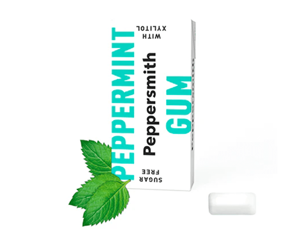 Xylitol (oats), gum base, peppermint oil, natural menthol, natural mint, thickener: gum arabic, emulsifier: lecithin, stabiliser: glycerol, glazing agent: carnauba wax.