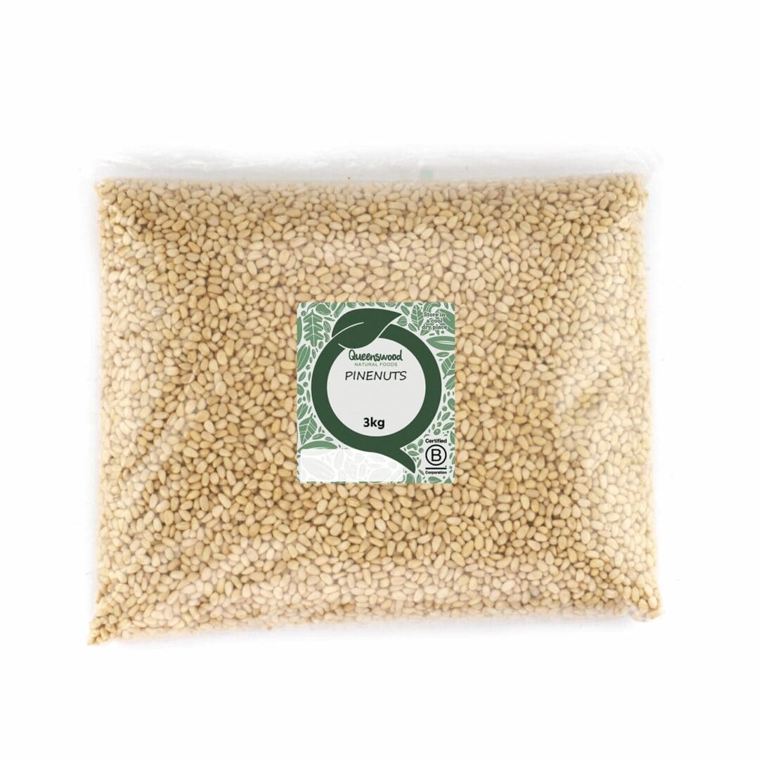 Premium pine nuts in a 3kg pack, perfect for adding nutty flavour and texture to salads, sauces, and baked goods. Ideal for professional kitchens.