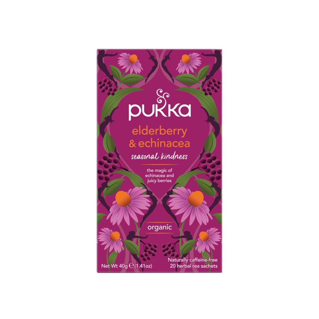 Pukka Organic Elderberry & Echinacea Tea features a soothing herbal blend with organic elderberries, blackcurrants, elderflower and echinacea. Supplied in 4×20 sachets, ideal for enhancing warm beverage menus.