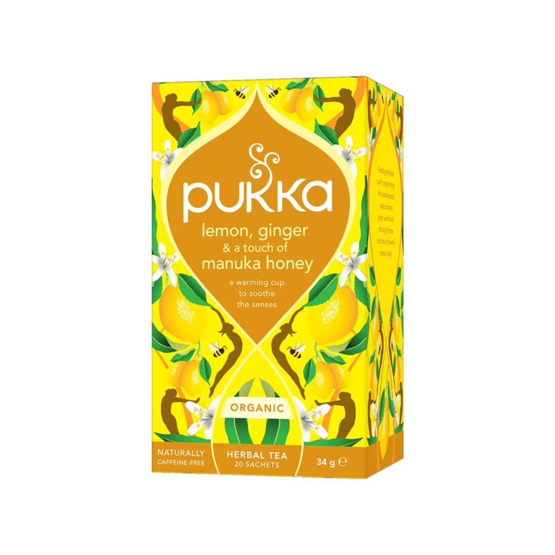 Ginger root (38%), lemongrass, lemon peel (15%), licorice root, natural lemon flavouring (5%), natural manuka honey flavouring (2%).