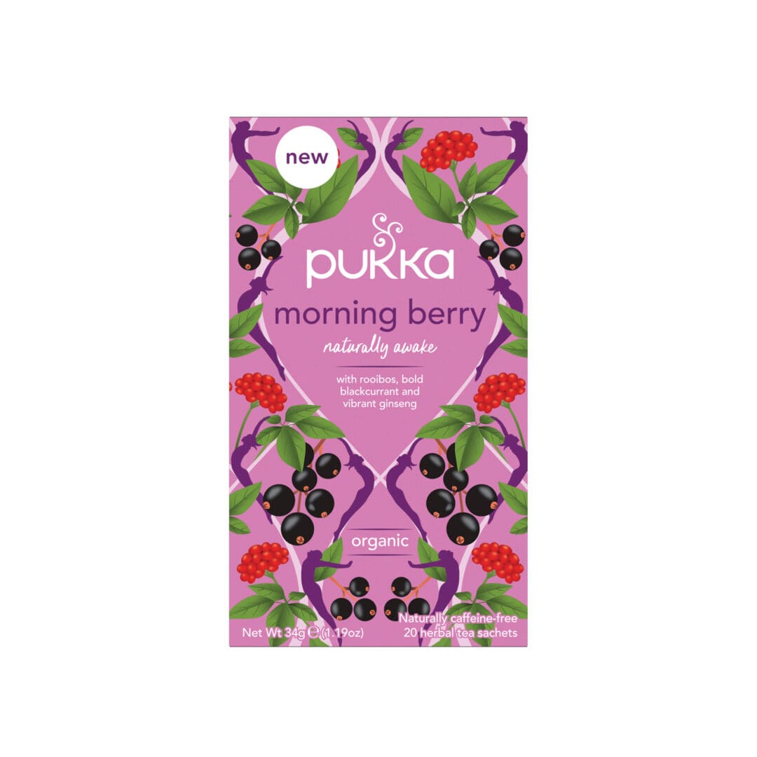 Pukka Organic Morning Berry tea combines sweet blackcurrant and blackberry with rooibos for a natural, caffeine-free energy boost. Available in 4x20 packs.